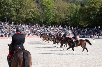 Reisen Sie frühzeitig an! An den Hengstparade-Tagen kommt es in der näheren und weiteren Umgebung zu Verkehrsstaus. Planen Sie längere Anfahrtszeiten ein.Gemäß verkehrsrechtlicher Anordnung wird von Gomadingen Richtung Marbach auf der L 249 für den durchfließenden Verkehr Richtung Lautertal eine Umleitung ab Gomadingen über Bernloch-Ödenwaldstetten-Eglingen-Wasserstetten eingerichtet.Für Besucher der Hengstparade ist die Zufahrt bis zum Parkplatz Marbach frei. Die Zufahrt für Menschen mit Behinderung ist möglich über die L230 Münsingen-Steingebronn über den Gestütsfeldweg.Die Landesstraße 380 in St. Johann-Würtingen wird entlang der Ortsdurchfahrt saniert,eine Umleitung ist eingerichtet,mit Behinderungen ist zu rechnen.Allen Besuchern wird empfohlen,frühzeitig anzureisen und der Parkbeschilderung zu folgen,da es erfahrungsgemäß kurz vor Beginn der Hengstparaden zu Verkehrsstaus kommt.Weitere Informationen zur Hengstparade finden Sie auf www.hengstparade-marbach.deFoto (Stephan Kube): Die große Marbacher Dressurquadrille in diesem Jahr gemeinsam mit den Lipizzanerhengsten aus LipicaPM Haupt- und Landgestüt Marbach