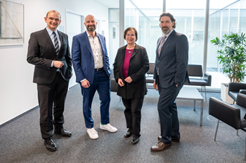 Foto(IHK-Bezirkskammer Göppingen,G. Carlucci):  Gernot Imgart (Leitender IHK-Geschäftsführer),Oliver Heer (2. Vizepräsident),Edith Strassacker (Präsidentin),Sven Maier (1. Vizepräsident)