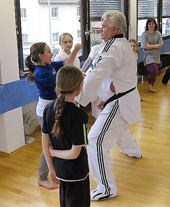 Nach nahezu vier Stunden sind meistens die ersten Hürden genommen,und die Teilnehmer haben gelernt wie man erkennbarer Gefahr aus dem Weg geht,wie man schnellstmöglich das Umfeld auf die bestehende Gefahrenlage hinweist,wie man Passanten bei nicht vermeidbaren Übergriffen um Unterstützung auffordert,und wie man sich als Kind aus Übergriffen durch Erwachsene schnell befreit,um dann anschließend in Schutzzonen flüchten zu können. (Ladengeschäfte,Arztpraxen usw.)