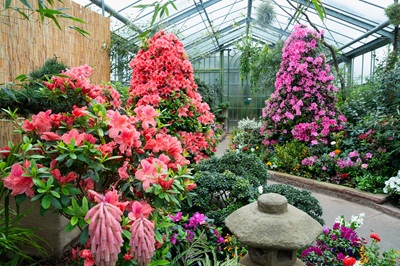 Zum Start ins Frühjahr wird es auch in der historischen Gewächshauszeile der Wilhelma von Tag zu Tag bunter. Nachdem die Kamelien schon seit Ende Januar für eine bunte Augenweide sorgen,stehen nun die Azaleen in voller Blüte. Ihr Farbspektrum reicht von zartem Weiß über Pastellrosa bis hin zu knalligem Pink.