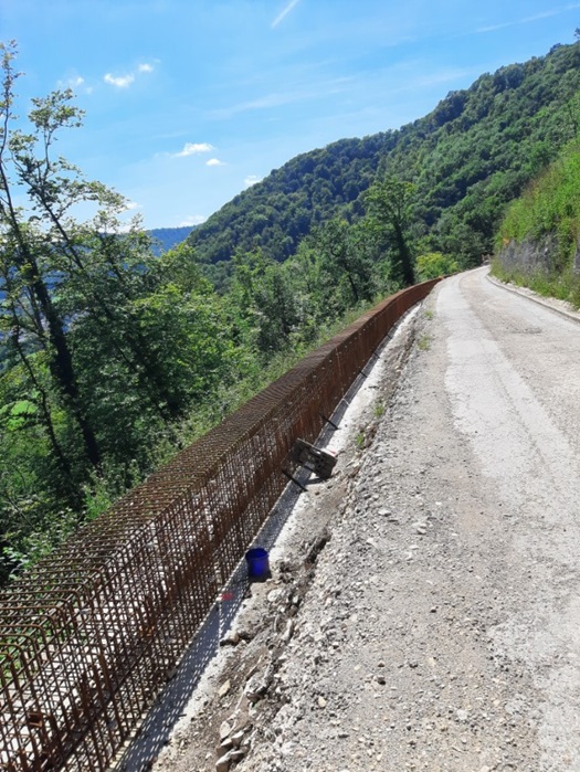 Zur Sicherung der Straße gegenüber Steinschlag sind die bislang vorhanden Steinschlagschutznetze erneuert und ergänzt worden. 3.150 m² hochfestes Stahldrahtgeflecht auf den Felsen und Böschungen verringern die Steinschlaggefahr.