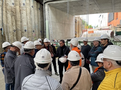 Bei einer Baustellenführung mit Oberbürgermeister Klaus Heininger und aktiven und ehemaligen Mitgliedern des Gemeinderats wird die künftige Unterführung deutlich sichtbar.