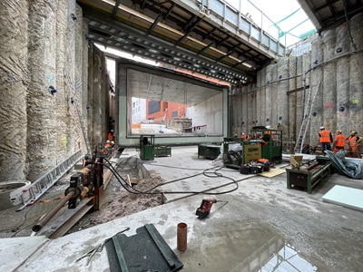Es tut sich was auf der großen Baustelle in der Innenstadt Eislingen. Nach den Vorbereitungsarbeiten und dem Erdaushub wurden in den letzten Monaten die ersten beiden Betonblöcke außerhalb der Eisenbahnanlagen fertiggestellt und letzte Woche unter die Eisenbahngleise gezogen. Zum Anlass dieses Meilensteins wurde der Gemeinderat von Tobias Clement,Geschäftsführer des Ingenieurbüro BNP aus Stuttgart über die Baustelle geführt und an verschiedenen Stellen mit vielen Details aus Planung und Durchführung auf den aktuellen Stand gebracht. Wie wurde die