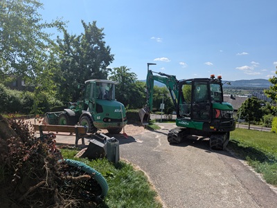 Foto (Bildquelle: Stadt Eislingen): Die Bagger sind angerollt und die Umgestaltung des Spielplatzes in der Sudetenstraße kann beginnen