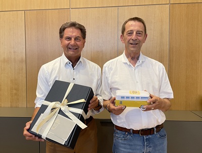 Oberbürgermeister Klaus Heininger dankte Bernd Letzel herzlich für die Bereitschaft,sich immer wieder neuen Herausforderungen zu stellen. Für den Ruhestand wünschte er alles Gute,Glück und Gesundheit. Alles Dinge die wichtig sind,um die neue Freiheit mit Lebensfreude zu erleben und zu gestalten. Als Symbol für die neuerlangte Freiheit überreichte er als Präsent das Model eins VW-Bulli,mit Gutscheinen und Wein wurde für das leibliche Wohl gesorgt.