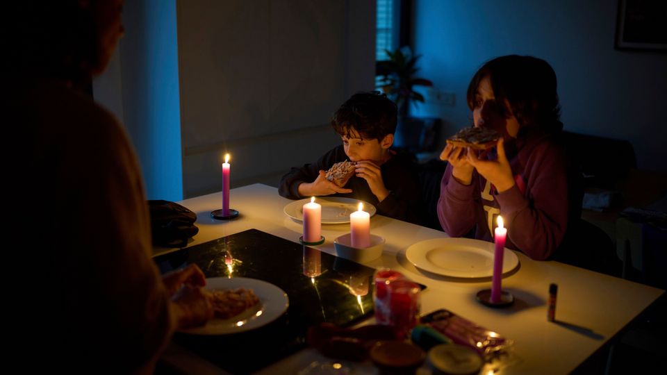 Spanische Familie bei Kerzenlicht während des Stromausfalls auf der Iberischen Halbinsel: Weltweit war 2023 nur in Südkorea die Stromversorgung noch sicherer als in Deutschland