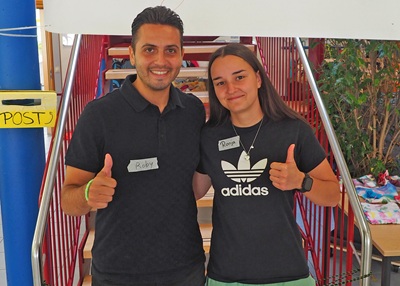 Fotos (Stadt Uhingen): Spaß gehört zum Alltag in der Ferienbetreuung. Ronja Fischer und Roberto Nicolosi leiten das Betreuerteam und setzen auf ein Miteinander auf Augenhöhe.