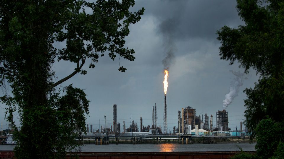 Gasfackel einer Erdölraffinerie in Norco,Louisana: Gesundheitsrisiken durch Luftverschmutzung