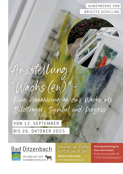 Ab dem 12. September öffnet die Ausstellung „Wachs(en)“ im Haus des Gastes ihre Türen und lädt Sie ein,die faszinierende Welt des Wachses zu entdecken. Die Vernissage findet am gleichen Tag um 18 Uhr im Haus des Gastes statt.