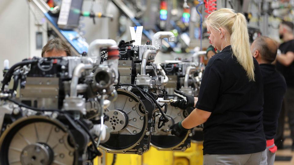 Deutz-Mitarbeiterin bei der Herstellung von Dieselmotoren