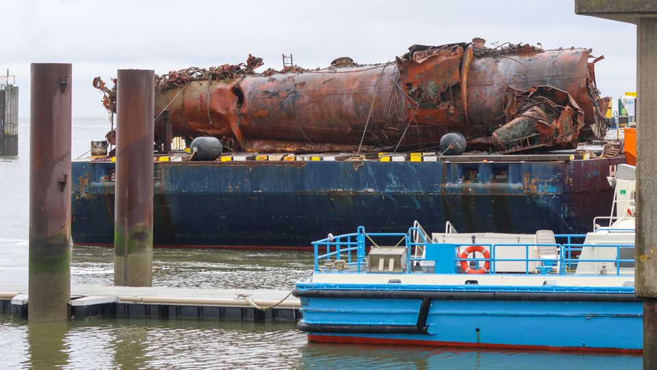 Überreste des U-Boots U16 im Hafen von Cuxhaven
