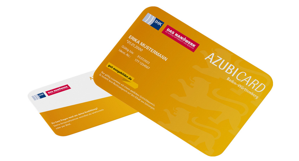 Bereits seit dem Ausbildungsjahr 2021 wird die Extern:AzubiCard Baden-Württemberg (AzubiCardBW)(Öffnet in neuem Fenster) von den teilnehmenden Kammern ausgegeben. Auszubildende,die einen Ausbildungsvertrag mit einem Mitgliedsbetrieb einer der teilnehmenden Kammern schließen,erhalten diese Karte automatisch nach Ausbildungsbeginn. Mit der AzubiCardBW erhalten die Jugendlichen einen praktischen Nachweis,dass sie Auszubildende sind. Zudem können sie bei vielen Betrieben und Einrichtungen Rabatte und besondere Angebote nutzen. Diese können online abgerufen werden. Interessierte Betriebe und Einrichtungen können ihre Angebote dort auch registrieren. Die Karte wird auch in vielen weiteren Regionen in Deutschland akzeptiert. Die AzubiCardBW wird in diesem Jahr voraussichtlich an rund 42.000 Auszubildende im ersten Lehrjahr ausgegeben.