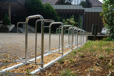Foto (Stadtverwaltung Geislingen an der Steige / Christiane Wehnert): Die neuen Fahrradständer an der Jahnhalle.