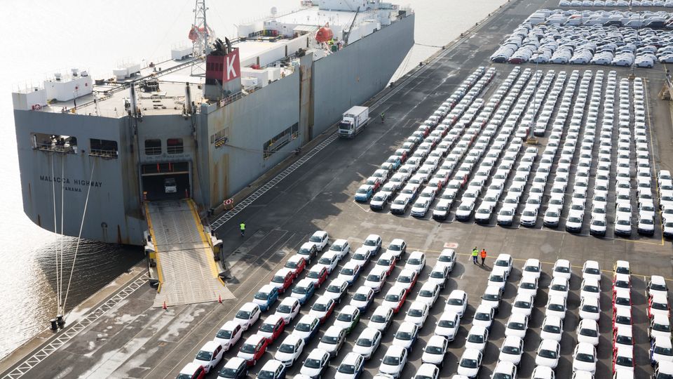 VW-Fahrzeuge im Hafen von Emden: Stehen bald die Bänder still?