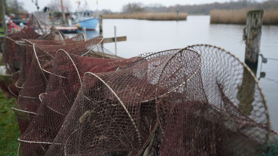 Fischerboote und Fischernetze an einem Steg in Gothmund an der Trave (Symbolbild)