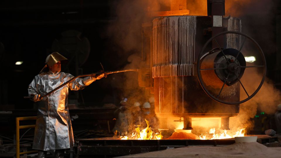 Stahlarbeiter in der Friedrich Wilhelms-Hütte in Mülheim an der Ruhr: Kriselnde Industrie