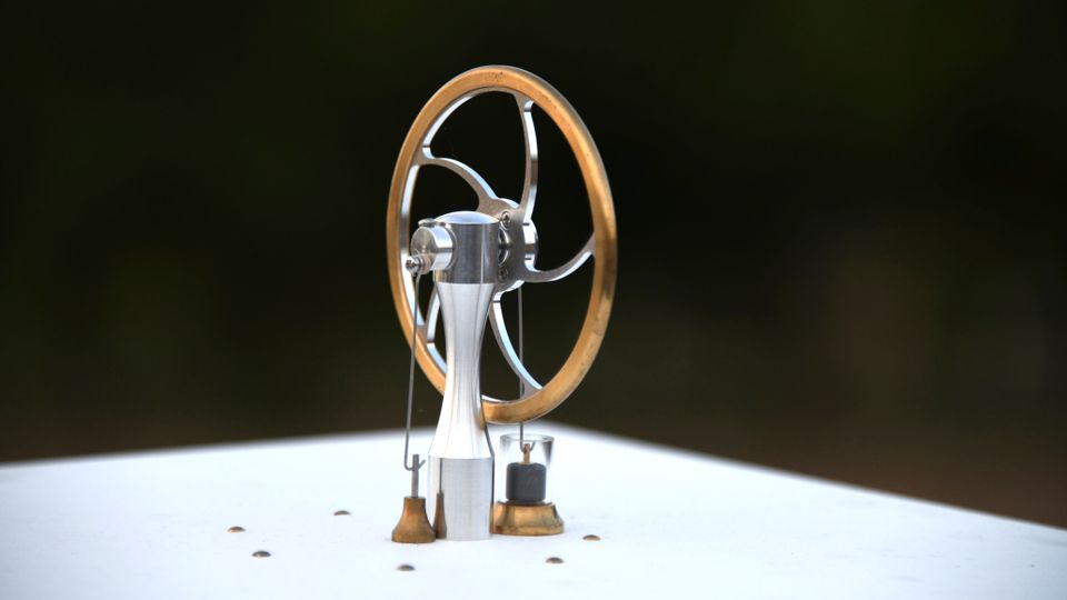 Die Maschine beruht auf einem sogenannten Stirlingmotor. Typischerweise wird Treibstoff verbrannt,um diesem Motor Wärme zuzuführen. Dadurch dehnt sich im Inneren ein Gas aus,das einen Kolben antreibt. Danach wird die Wärme an die Umgebung abgegeben,das Gas zieht sich wieder zusammen und der Prozess kann von Neuem beginnen. »Diese Motoren sind sehr effizient,wenn nur kleine Temperaturunterschiede bestehen«,sagt Munday in einer Pressemitteilung seiner Universität.