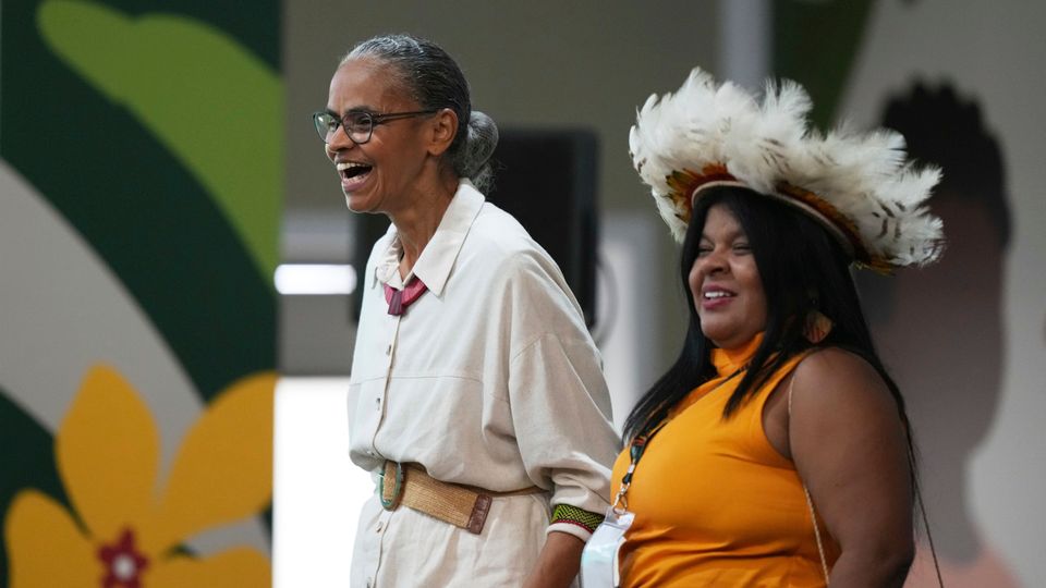 Umweltministerin Marina Silva mit der Ministerin der Indigenen Sônia Guajajara auf der COP30