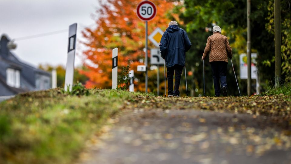 Rentner auf Spaziergang: Der Bericht berücksichtigt das in der Union umstrittene Rentenpaket,das noch nicht beschlossen ist