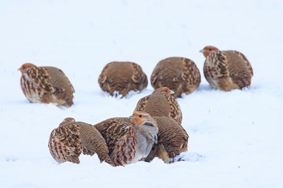 Das Jahr des Rebhuhns startet mitten im frostigen Winter. Noch leben die Hühnervögel in „Ketten“ auf kahlen Feldern,doch schon im Februar lösen sich diese schützenden Familienverbände auf,wenn der Vogel des Jahres 2026 auf Brautschau geht.
