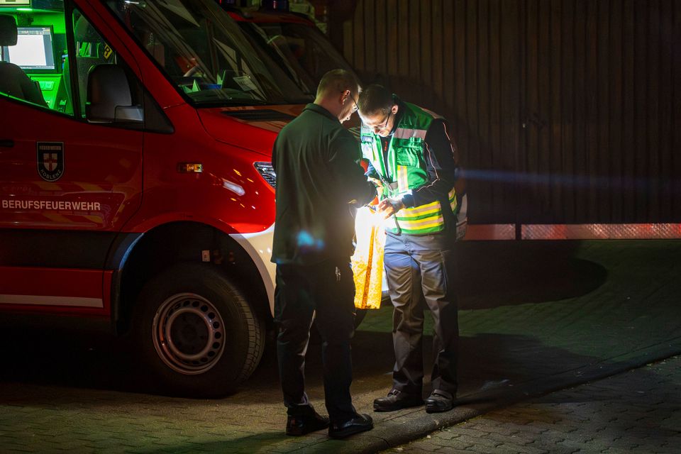 Einsatzkräfte in Koblenz mit Meteoritentrümmern: Bruchstücke überstanden den Flug