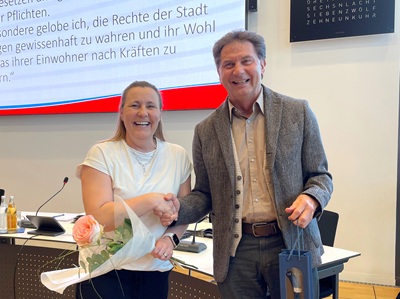 Gemeinderat Andreas Cerrotta (Freie Wähler Vereinigung FWV) hatte einen Antrag auf das Ausscheiden aus dem Gemeinderat gestellt. Diesem wurde in der Sitzung am 23.03.2026 stattgegeben. Sibille-Rosina Napolitano (FWV) ist von Beruf Krankenpflegerin. Sie rückte nun nach und legte in der Sitzung ihr Gelöbnis ab. „Sie werden sicher eine Bereicherung für das Gremium sein.“ begrüßte Oberbürgermeister Klaus Heininger das neue Gemeinderatsmitglied und wünschte ihr ein gutes Ankommen.